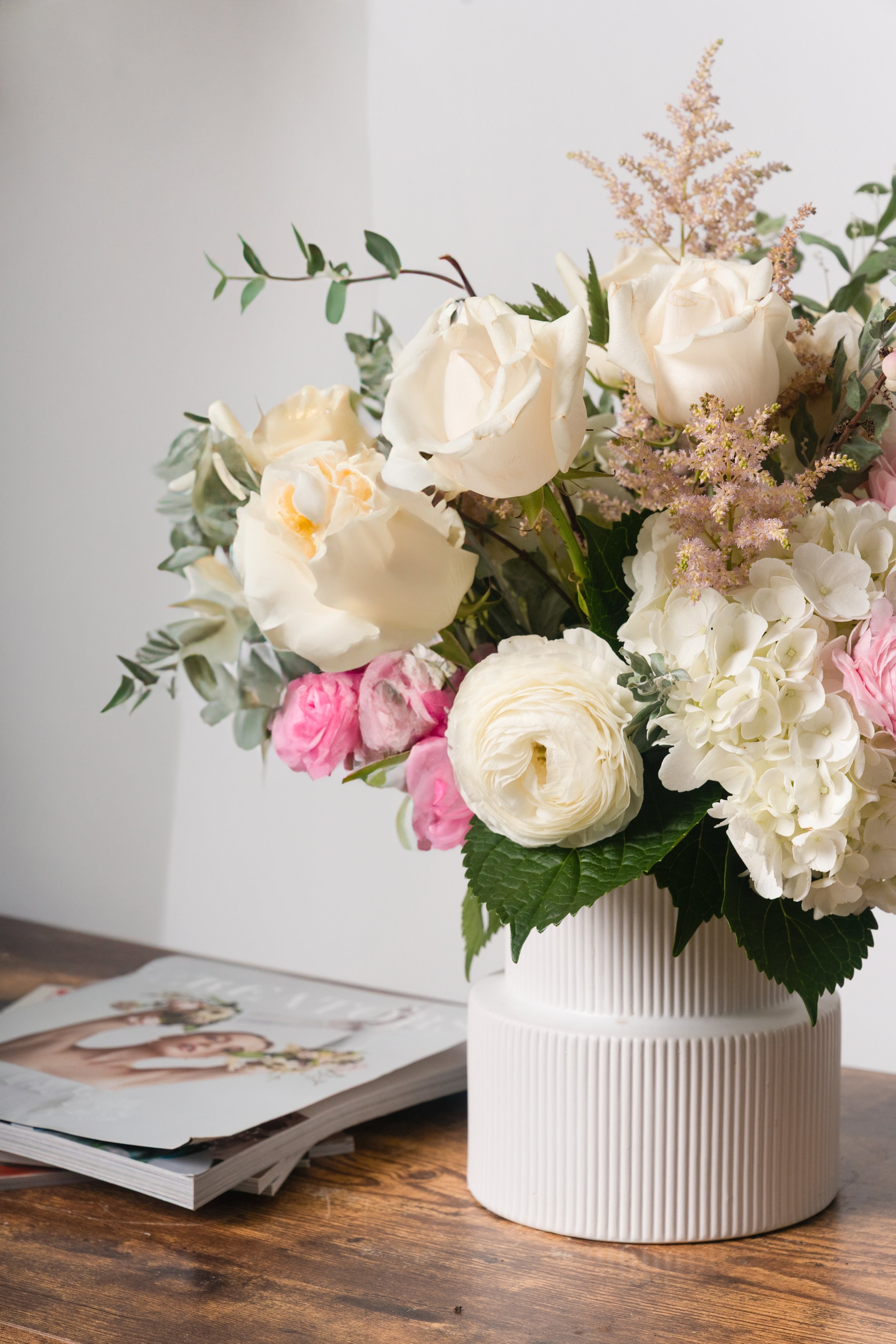 Fresh arrangements delivered weekly or bi-weekly to elevate your reception desk and client experience.